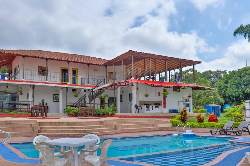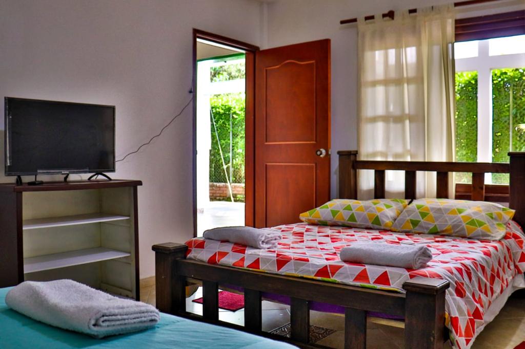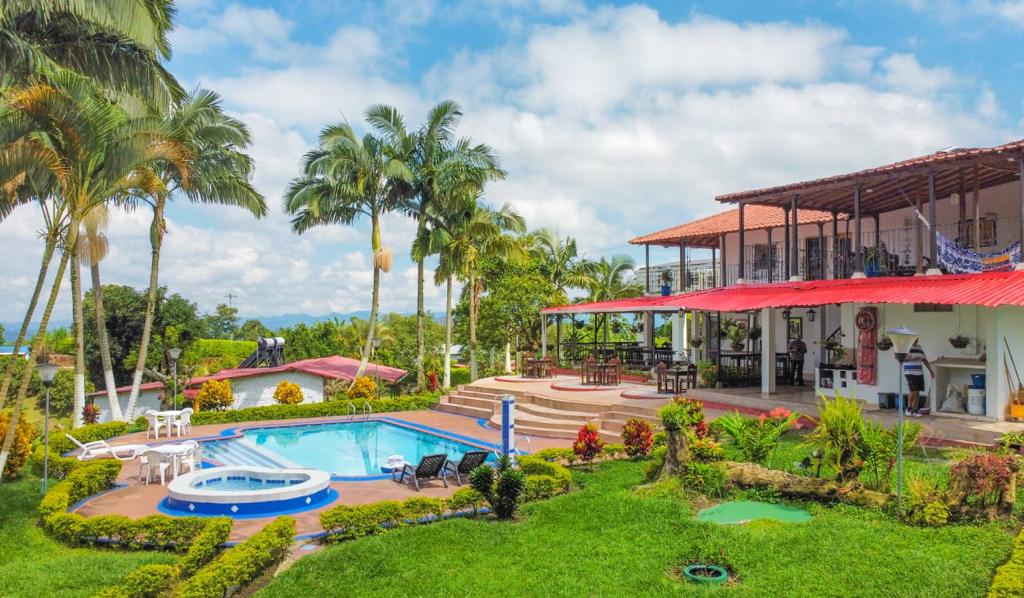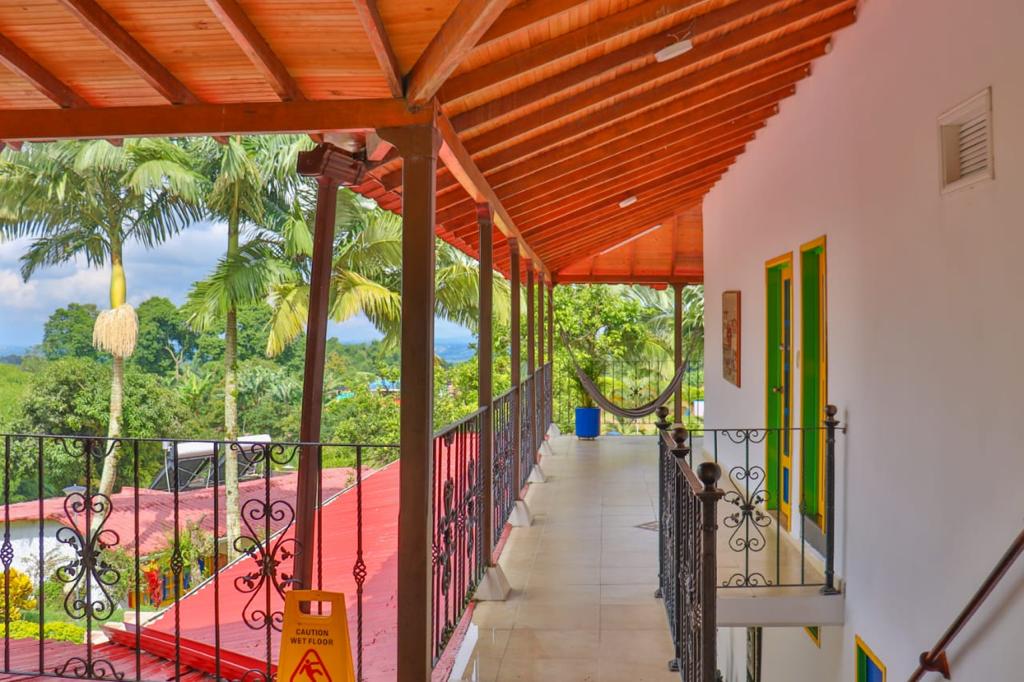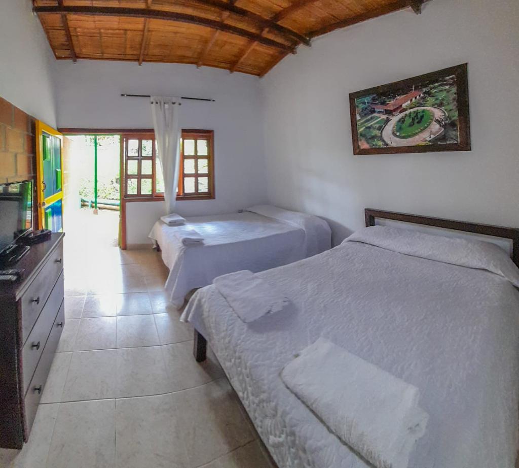 4.8 hectáreas 11 habitaciones Capacidad : 42 personas Más de 200 palos de aguante cultivados . Se cosecha progresivamente . La policía de turismo hace controles constantemente para brindar seguridad. Tiene paneles solares que dan energía para prender las luces del hotel y calentadores de agua . direccion: via armenia- montenegro, salida 2, vereda santa rita, kilometro 4