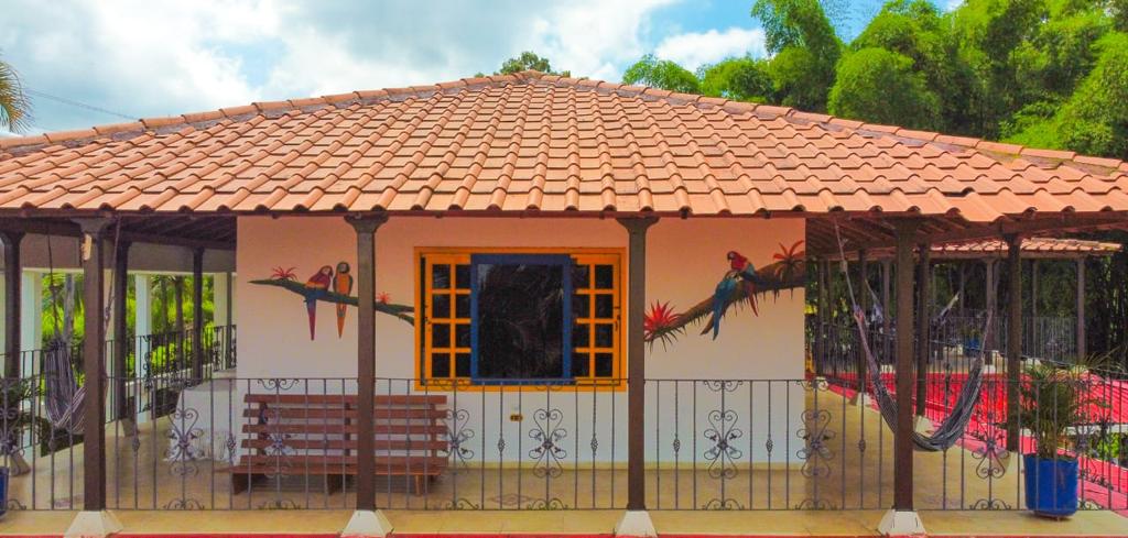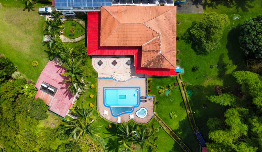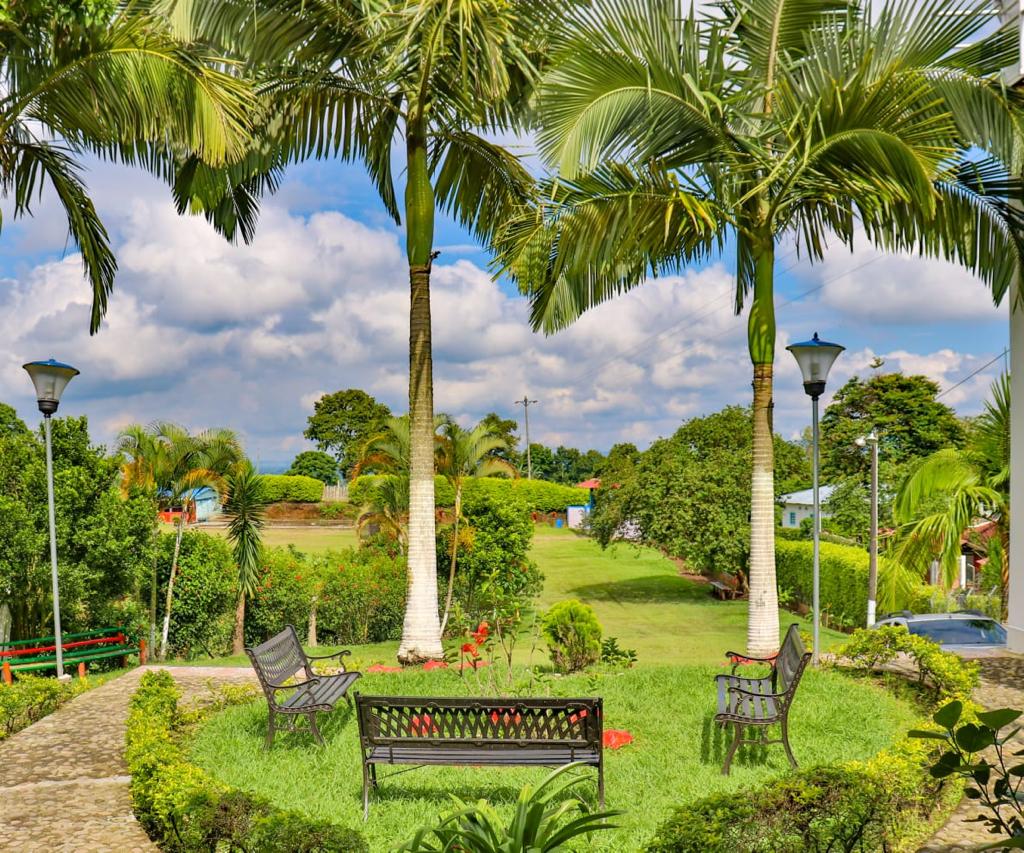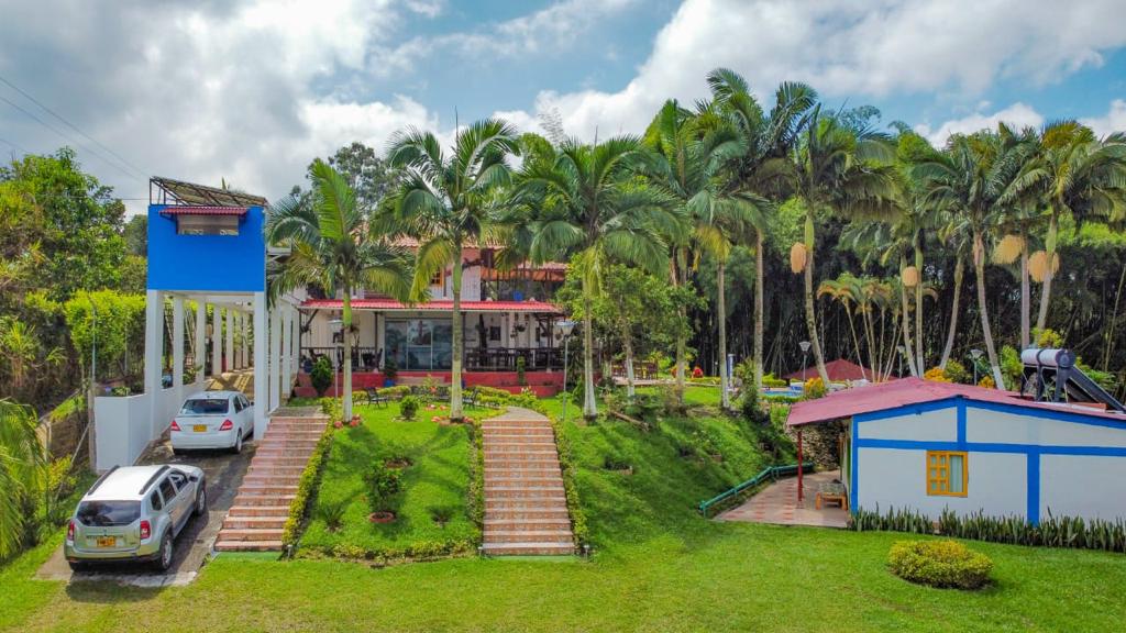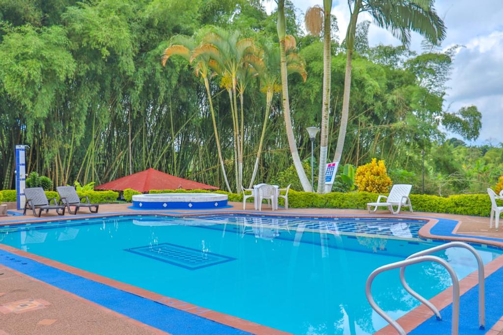 4.8 hectáreas 11 habitaciones Capacidad : 42 personas Más de 200 palos de aguante cultivados . Se cosecha progresivamente . La policía de turismo hace controles constantemente para brindar seguridad. Tiene paneles solares que dan energía para prender las luces del hotel y calentadores de agua . direccion: via armenia- montenegro, salida 2, vereda santa rita, kilometro 4