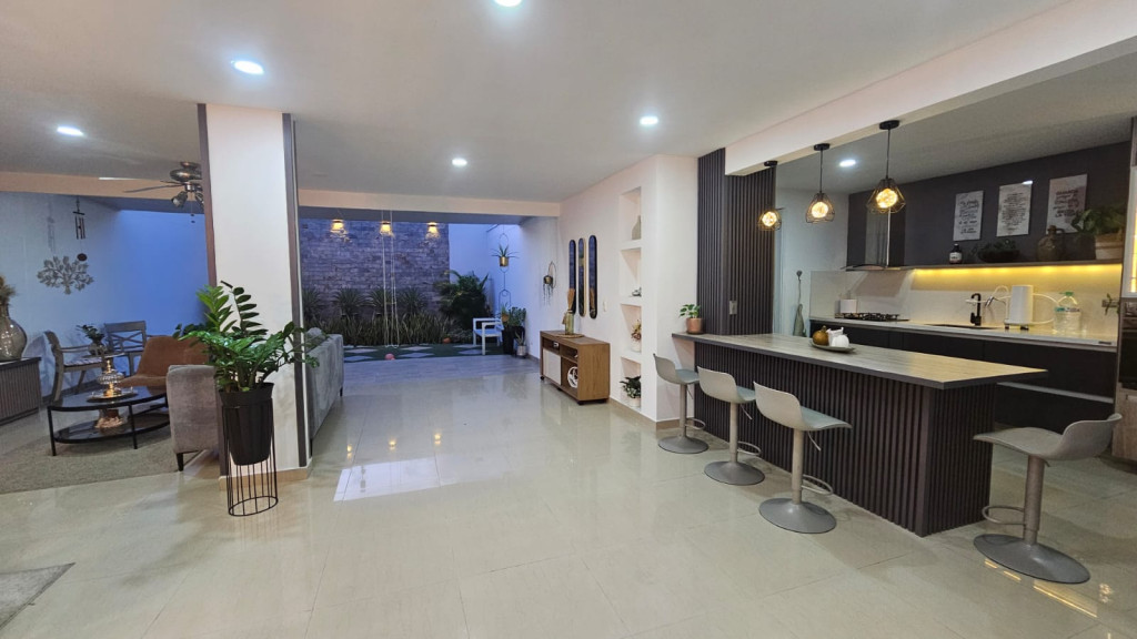 ¡Bienvenido a tu nuevo hogar en ! Esta espectacular casa de 220 metros cuadrados cuenta con 3 habitaciones, 5 baños y 2 parqueaderos. La cocina en L con isla es perfecta para tus reuniones familiares, mientras que el jardín interior te brinda un espacio de tranquilidad. Además, podrás trabajar desde casa en el estudio y relajarte en la piscina del conjunto cerrado. Con acceso pavimentado y vigilancia privada 24/7, ¡no querrás perderte esta oportunidad! ¡Contáctanos ahora para agendar una visita y hacer de esta casa tu nuevo hogar!